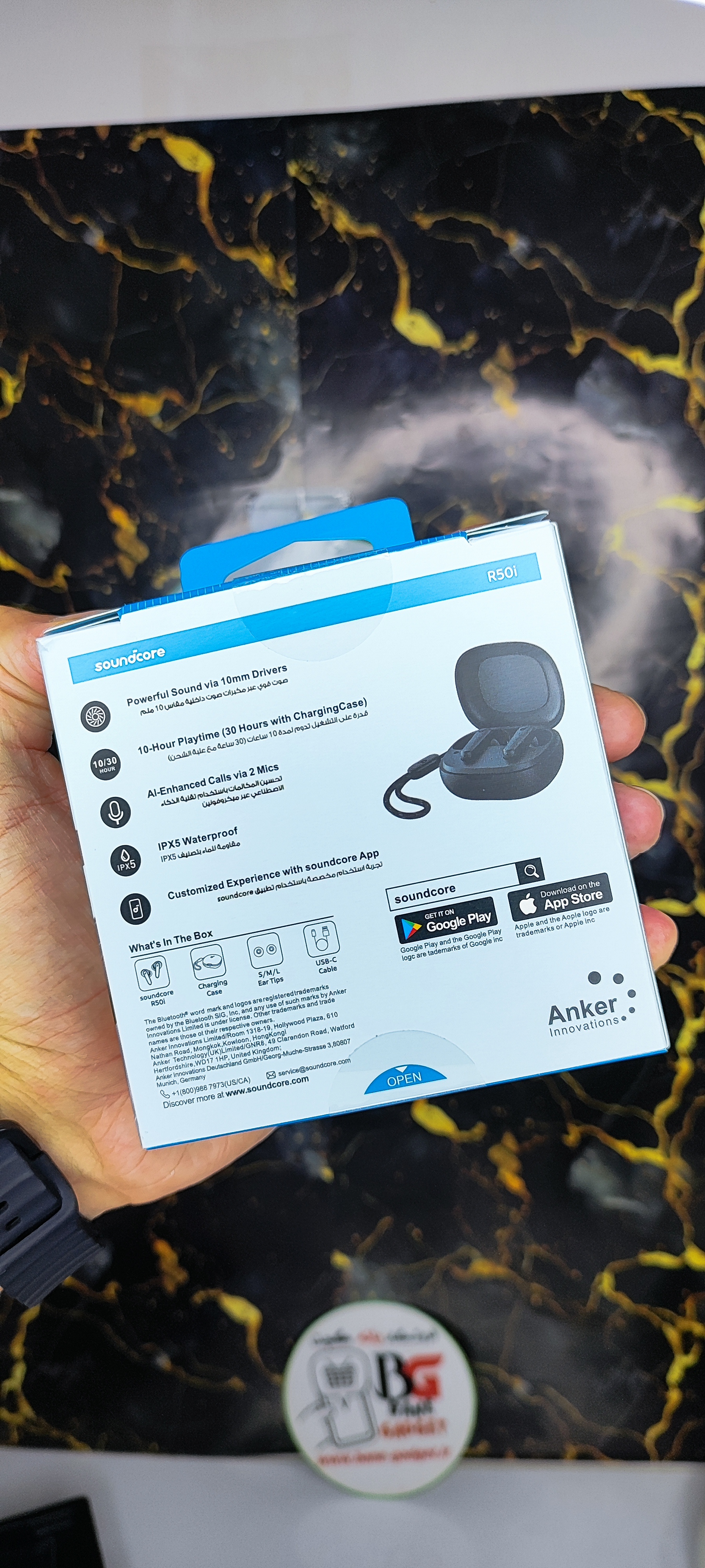 هدفون بیسیم Soundcore R50i نیز مانند سایر محصولات Anker بستهبندی زیبا و با استحکامی دارد. در داخل بستهبندی، یک دفترچه راهنما، 2 جفت پلاستیک نوکگوشی اضافی (بزرگ و کوچک)، و یک کابل شارژ USB-C قرار دارد.