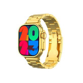 قابلیت مکالمه و تماس دریافت پیامها، تماسها و نوتیفیکیشنهای اپلیکیشنهای محبوب (واتساپ، تلگرام و اینستاگرام) جنس بدنه:استیل ضد زنگ با روکش طلایی سایز اصلی متری صفحه نمایش IPS LCD یا AMOLED با رزولوشن بالا ضربان قلب، کالری مصرفی، پایش خواب و اکسیژن خون امکانات ورزشی: ردیابی فعالیتهایی مثل دویدن، دوچرخهسواری، پیادهروی و یوگا کنترل موسیقی و دوربین گوشی عمر باتری:بسته به استفاده، از 4 تا 7 روز (دارای حالت ذخیره انرژی) نوع شارژ:شارژ بیسیم وایرلس قابلیت اتصال به گوشیهای اندروید و iOS از طریق بلوتوث اپلیکیشنهای اختصاصی برای همگامسازی اطلاعات مقاوم در برابر آب
