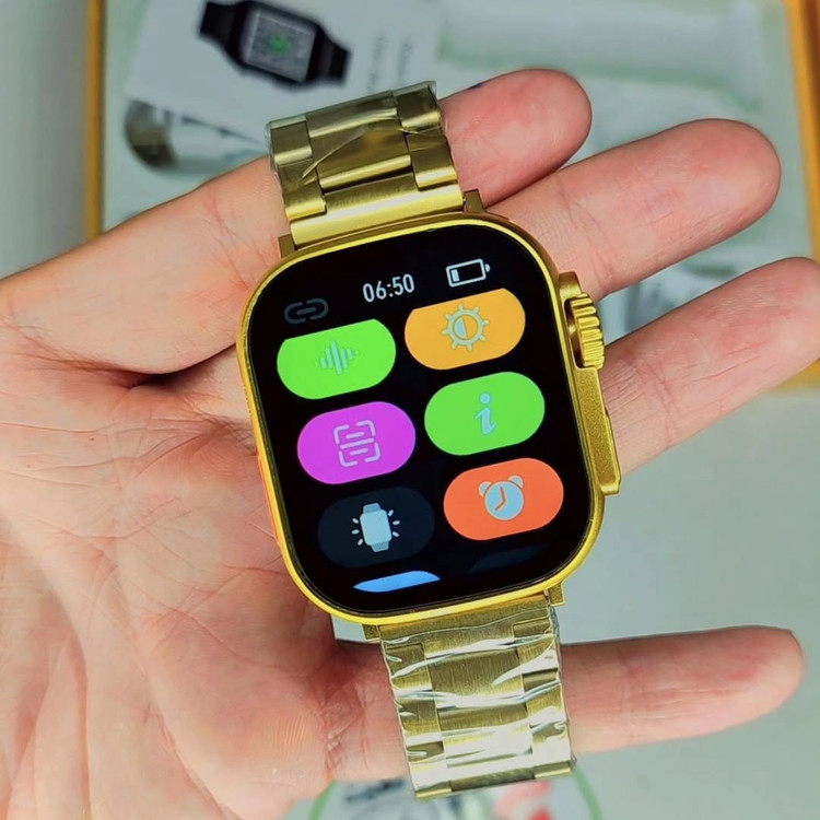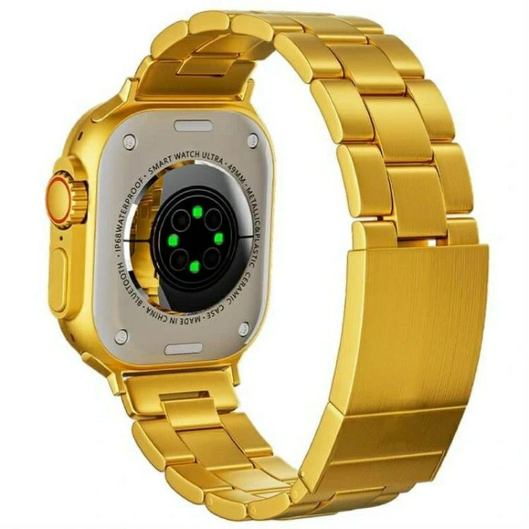 قابلیت مکالمه و تماس دریافت پیامها، تماسها و نوتیفیکیشنهای اپلیکیشنهای محبوب (واتساپ، تلگرام و اینستاگرام) جنس بدنه:استیل ضد زنگ با روکش طلایی سایز اصلی متری صفحه نمایش IPS LCD یا AMOLED با رزولوشن بالا ضربان قلب، کالری مصرفی، پایش خواب و اکسیژن خون امکانات ورزشی: ردیابی فعالیتهایی مثل دویدن، دوچرخهسواری، پیادهروی و یوگا کنترل موسیقی و دوربین گوشی عمر باتری:بسته به استفاده، از 4 تا 7 روز (دارای حالت ذخیره انرژی) نوع شارژ:شارژ بیسیم وایرلس قابلیت اتصال به گوشیهای اندروید و iOS از طریق بلوتوث اپلیکیشنهای اختصاصی برای همگامسازی اطلاعات مقاوم در برابر آب